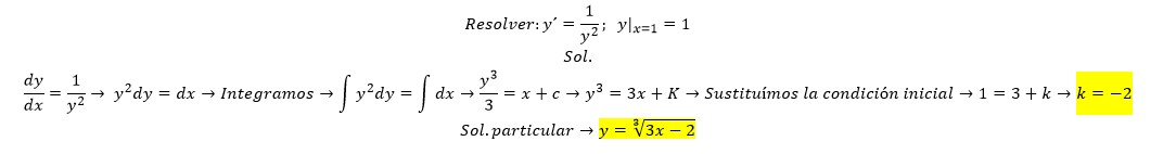 ahora volvemos reemplazamos en la solución general, y obtenemos la solución particular que pide el ejercicio: