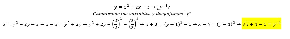 Como saldría este ejercicio de pasar a función inversa f(x) = x2 + 2x -3 (x2 es que está elevado al cuadrado)
