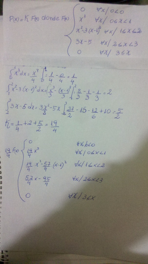 Buenos dias, me podrían decir si esta bien lo que hice, me pide hallar K para que sea función probabilidad.