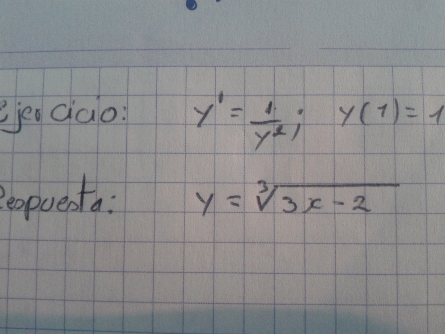 Hola unicoos por favor ayuda con esta ecuación diferencial con cambio de variable con condición dy/dx=1/y^2; y(1)=1 les agradezco mucho.