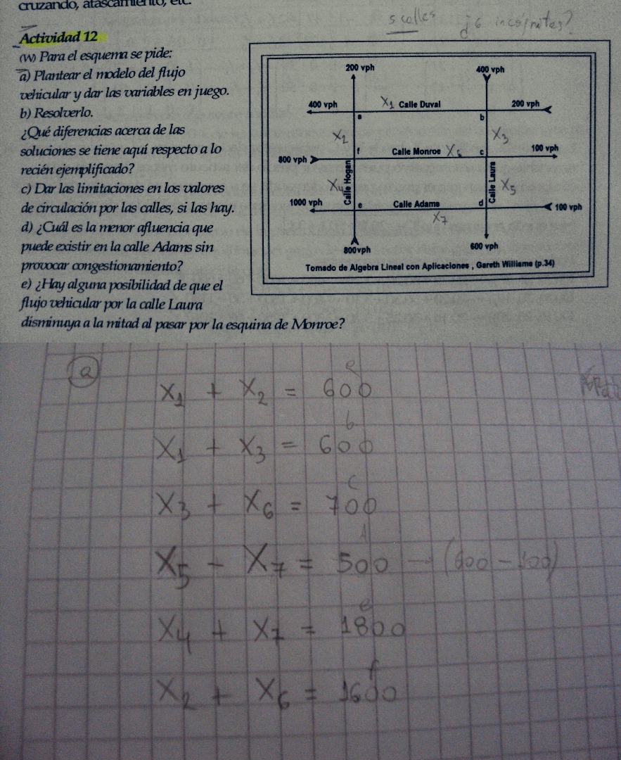 pero en los los puntos e y f se ve un doble sentido si no me equivoco... cómo tengo que plantear la matriz del sistema en ese caso? podrían decirme? adjunto lo que hice, me trabé en eso porque no sé si tengo que cambiar signos, agregar variables o qué.. no sé que se hace en ese caso..Muchas gracias por la ayuda!!