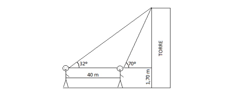 b) ¿Cuál es la altura de la torre teniendo en cuenta que la persona mide hasta los ojos 1,70m?
