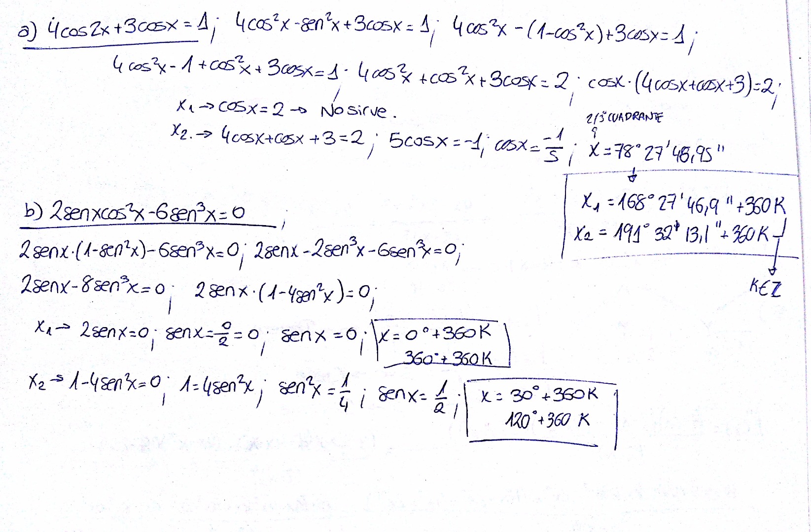 Aquí de nuevo ^^. ¿Me podéis decir en un momento si he hecho estas ecuaciones trigonométricas bien? Gracias :)