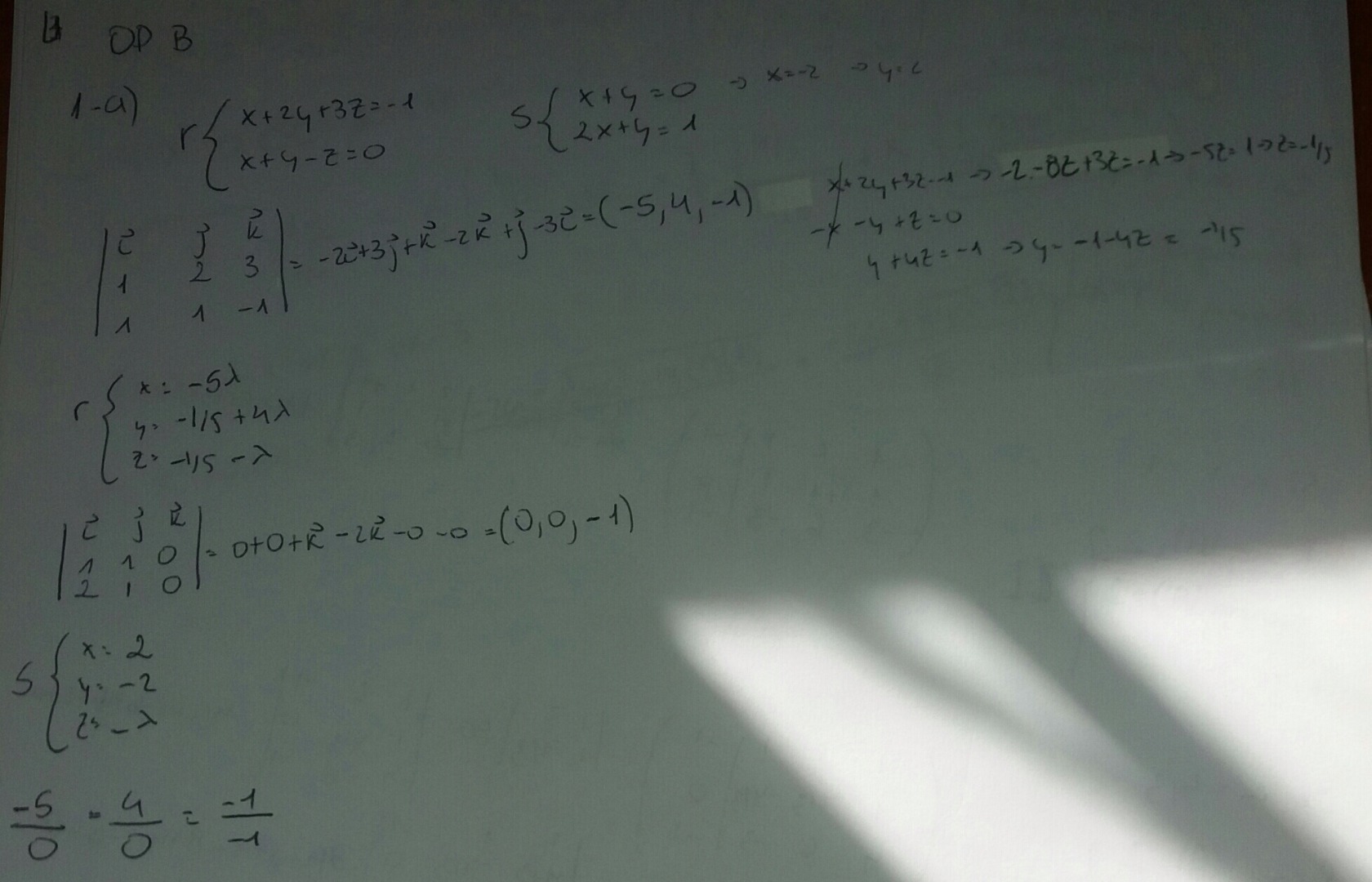 Podéis ayudarme con este ejercicio? Me he quedado parado, no se como seguir ya que al intentar estudiar la posición relativa de las rectas me da una indeterminación.