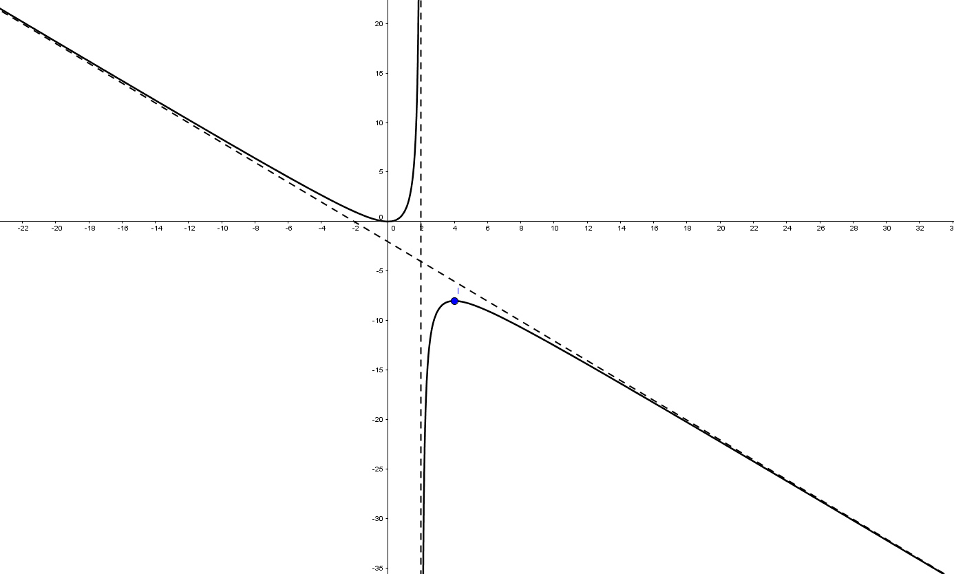 _ para analizar los intervalos de crecimiento, hay que incluir los puntos de discontinuidad, en este caso el x=2 de la asíntota.