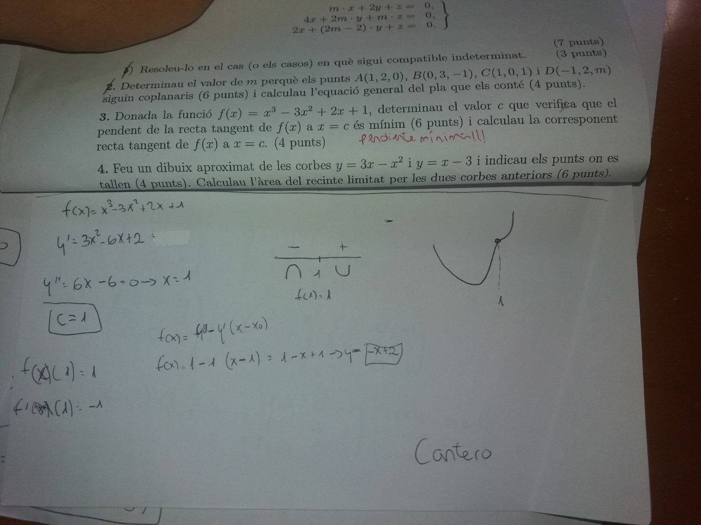 El problema es que una vez hallado el punto de inflexion hago una dibujo de ayuda y a mi parecer la tangente al punto c es una recta de pendiente máxima y no mínima.