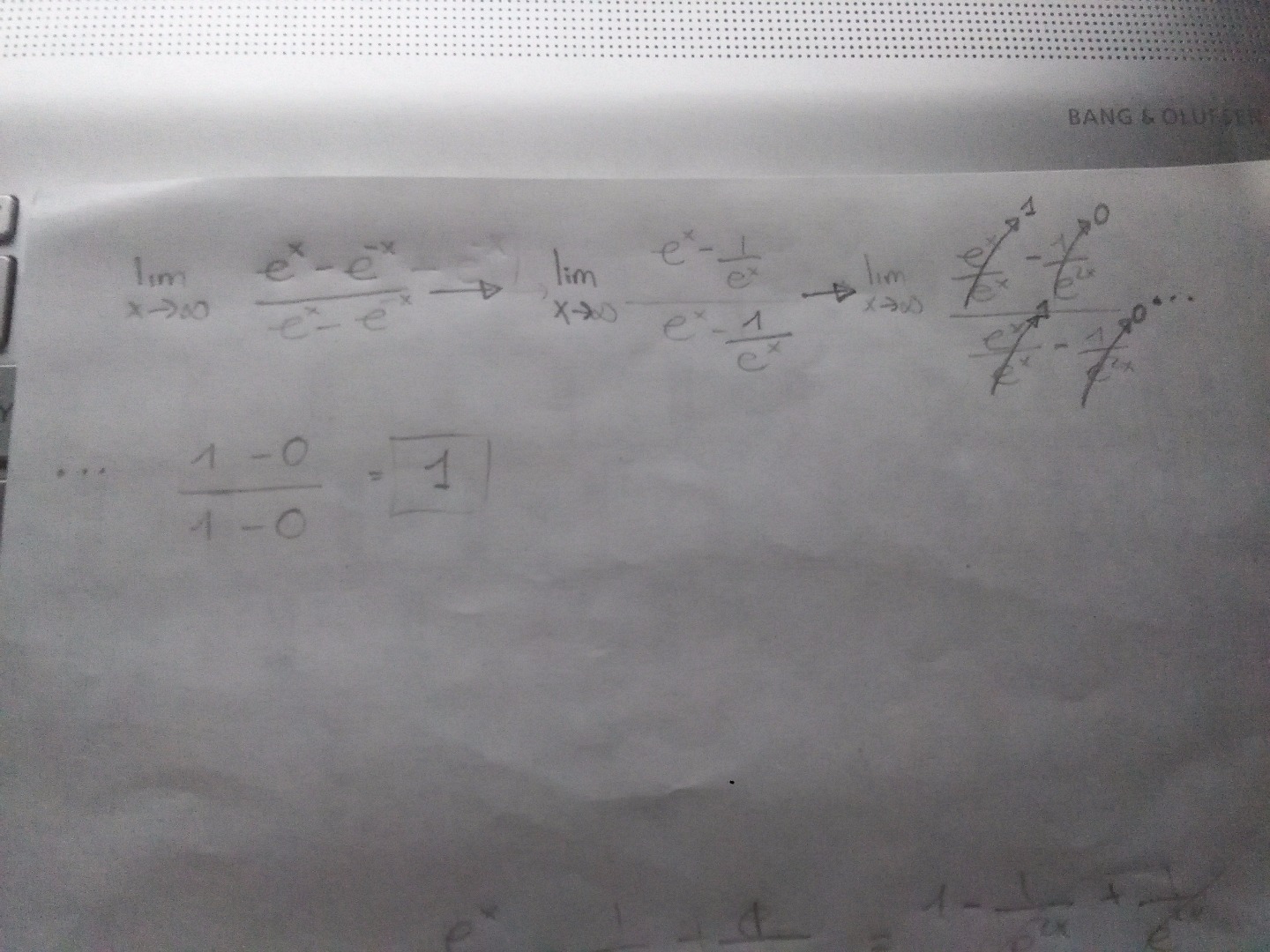Hola, una pregunta como se resolvería el siguiente limite?: lim ((e^x)-(e^-x))/((e^x)+(e^-x)) cuando x tiende a infinito