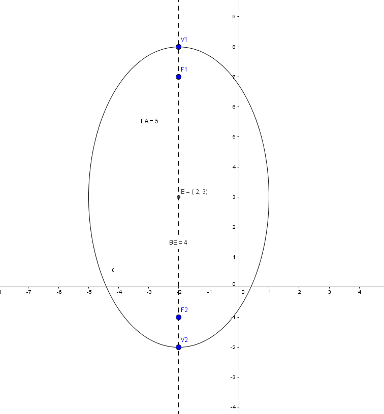 luego la elipse es (x+2)²/9+(y-3)²/25=1