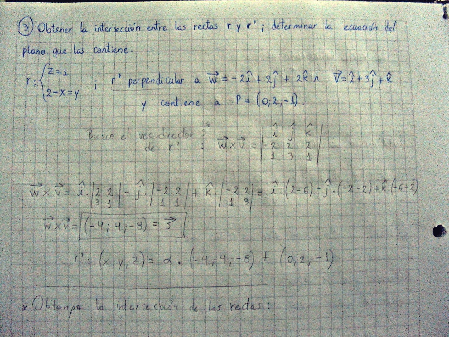 Tengo que hallar la intersección entre las rectas y determinar la ecuación del plano que las contiene.... Gracias!