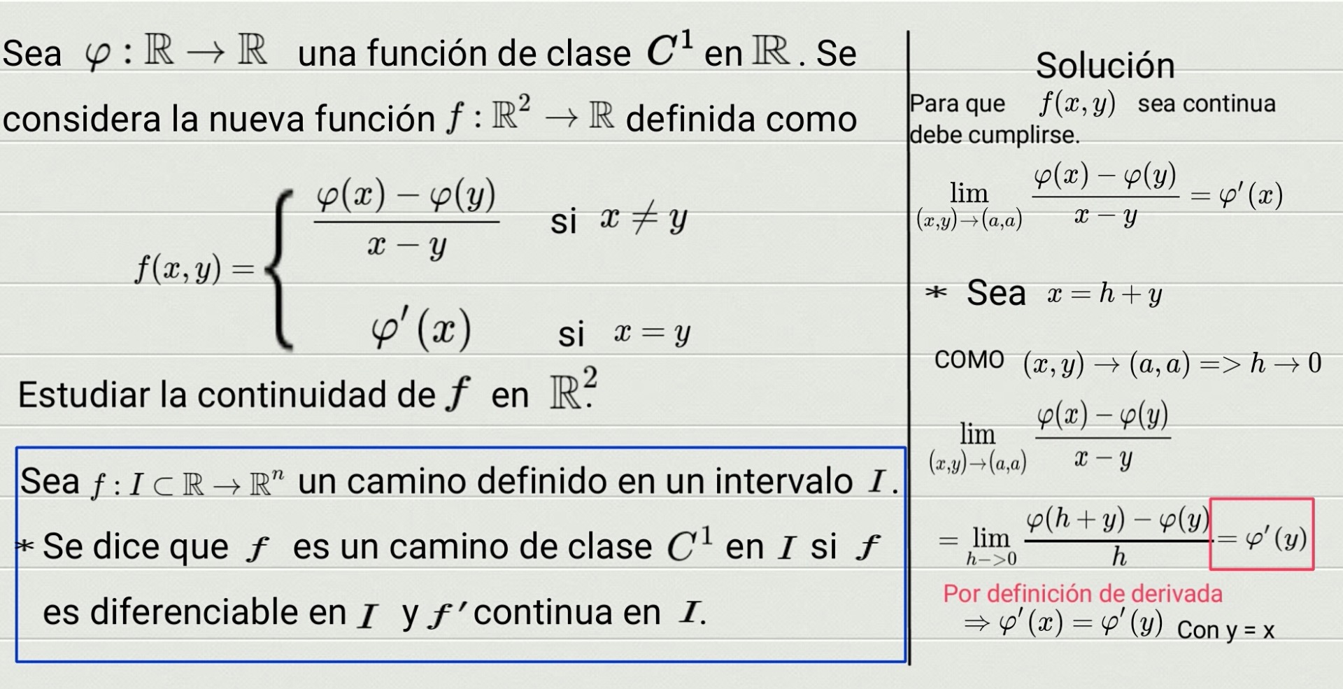 Hola Unicoos, lo que quiero probar es que el límite (x,y) a (a,a) f (x,y) sea derivada de fi (x)..... al final puedo tomar un y = x y decir que son iguales ? O tengo que Demostrar por definición en "términos de delta y epsilon".... Gracias Unicoos.
