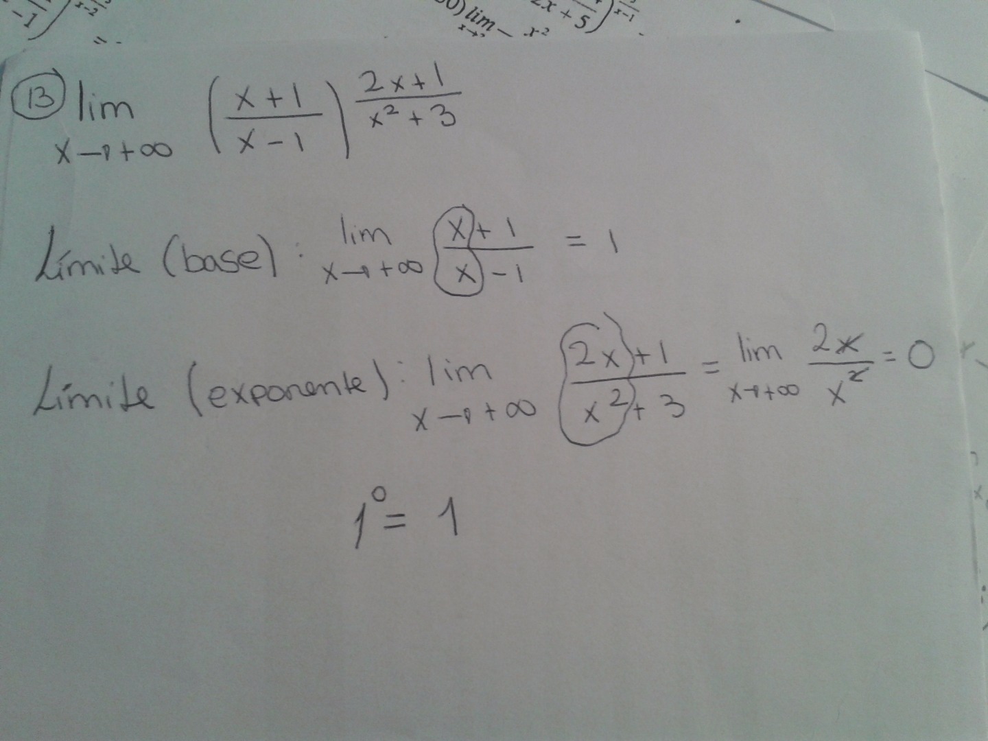 se puede hacer por orden de infinitud. Como son del mismo grado ambos miembros de la fracción, se dividen los números que multiplican a las "x". En este caso 1/1=1.