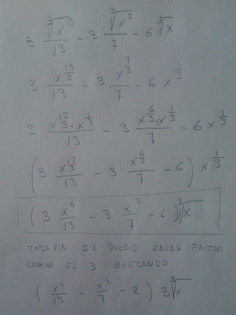 Hola, alguien me puede ayudar con este ejercicio de integrales, la integral que me proponen calcular es la que indica la imagen, la cualcule y llegue a ese resultado, pero me gustaria sacar la raiz cubica de x, de factor comun y llegar al ultimo resultado, y no se como hacerlo. ALguien me da una mano con las propiedades y esas cosas?