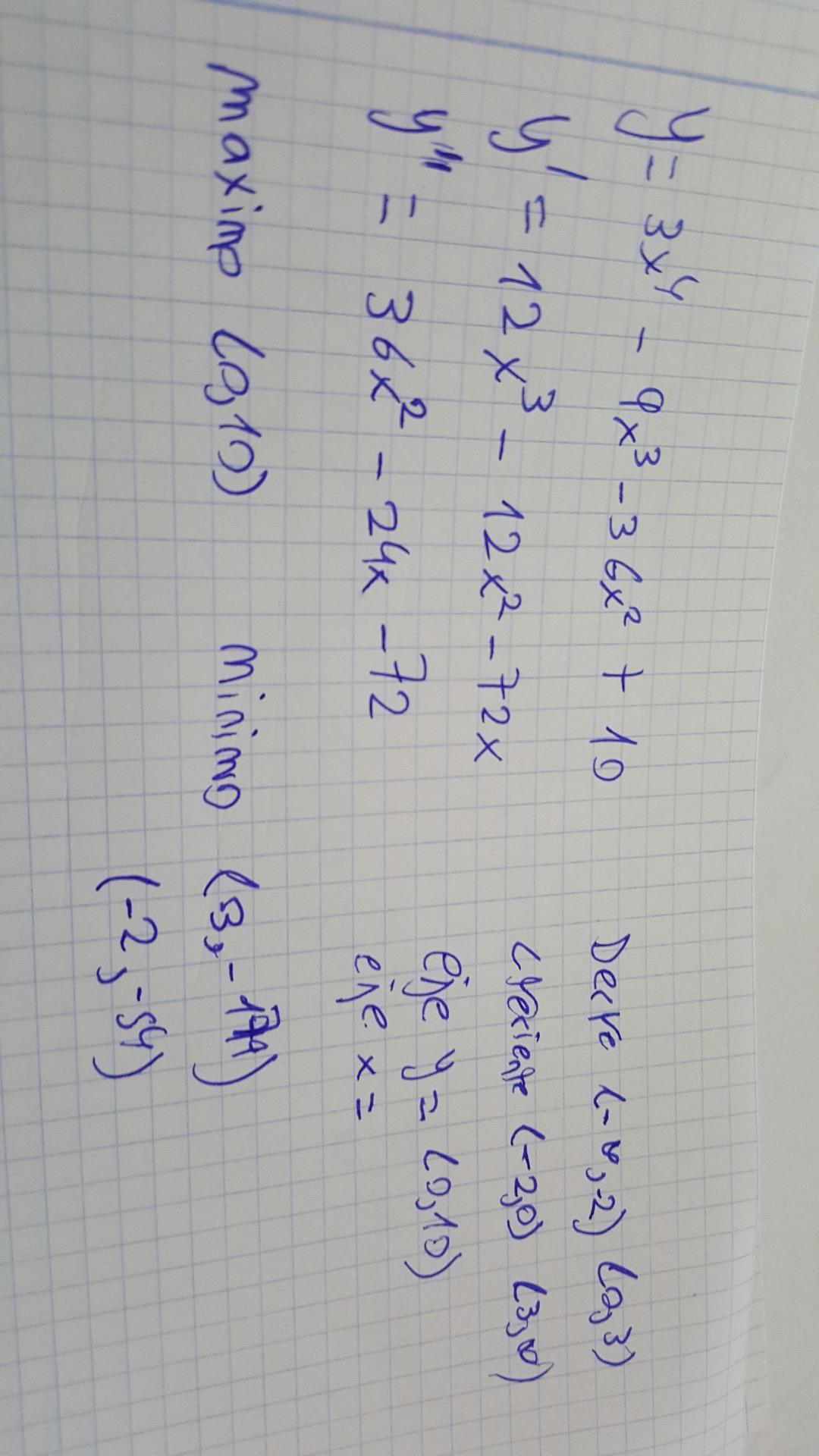 Os pongo la funcion y todo lo que he calculado de ella. Pero no se como representar la gráfica, me pueden ayudar? Gracias.