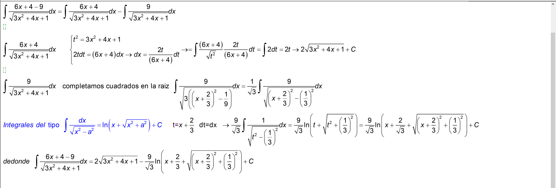 unicoos podrian ayudarme por fabor con esta integral mañana tengo un examen redificil..........lo intentado hacer pero tengo duda con la respuesta