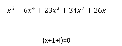 Hola me piden comprobar que (x+1+i) es raíz del polinomio, y si es, pero no se si se puede hacer la comprobación con división sintética; como se hace división sintética con números complejos