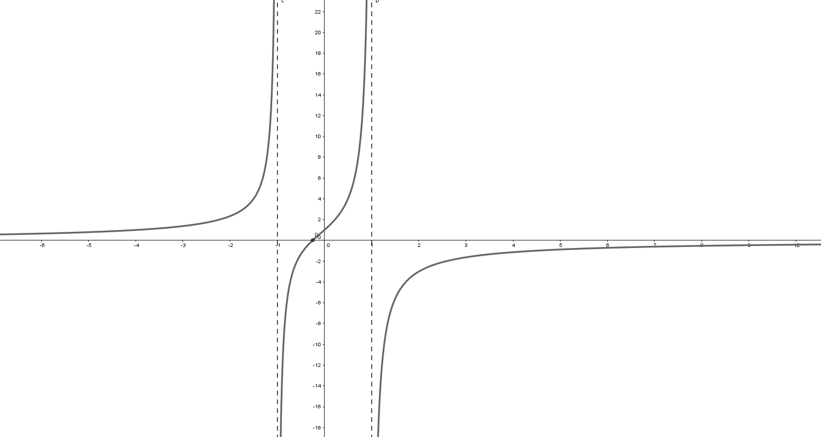 tengo que representar la función f(x)= (-4x -1) / (x² - 1). Hay una parte que no entiendo: me sale que corta al eje x en el punto (-1/4, 0) y que la ecuación de la asíntota horizontal es y=0. ¿Me podéis ayudar?