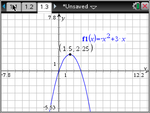 Para el vértice Y sustituyes por 1,5 como has hecho tú: f(1,5)= -(1,5)²+ 3*1,5= 2,25
