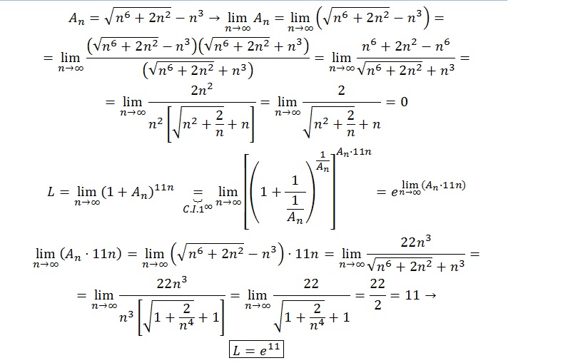 calcular limite cuando n tiende a infinito de: (1+An)^11n