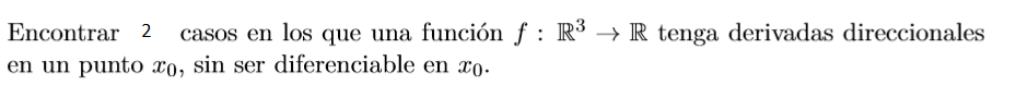 Se me ocurre que usar funciones cuyos limites de la definición de diferenciabilidad no sean 0 y que el limite de derivada direccional exista. Pero no se me ocurre ninguna función, ayuda por favor !