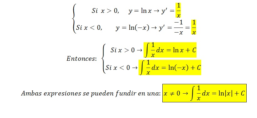 ¿Me podrían explicar cuando un logaritmo neperiano (como resultado de una integral) se pone con valor absoluto y cuando no?