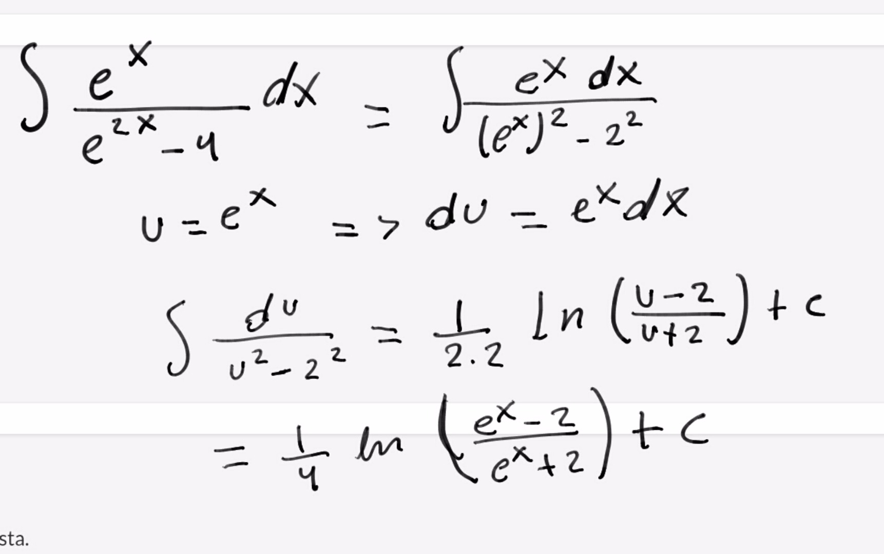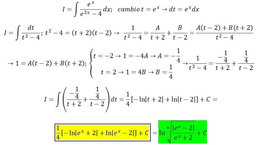∫[e^x/(e^2x - 4)]dx