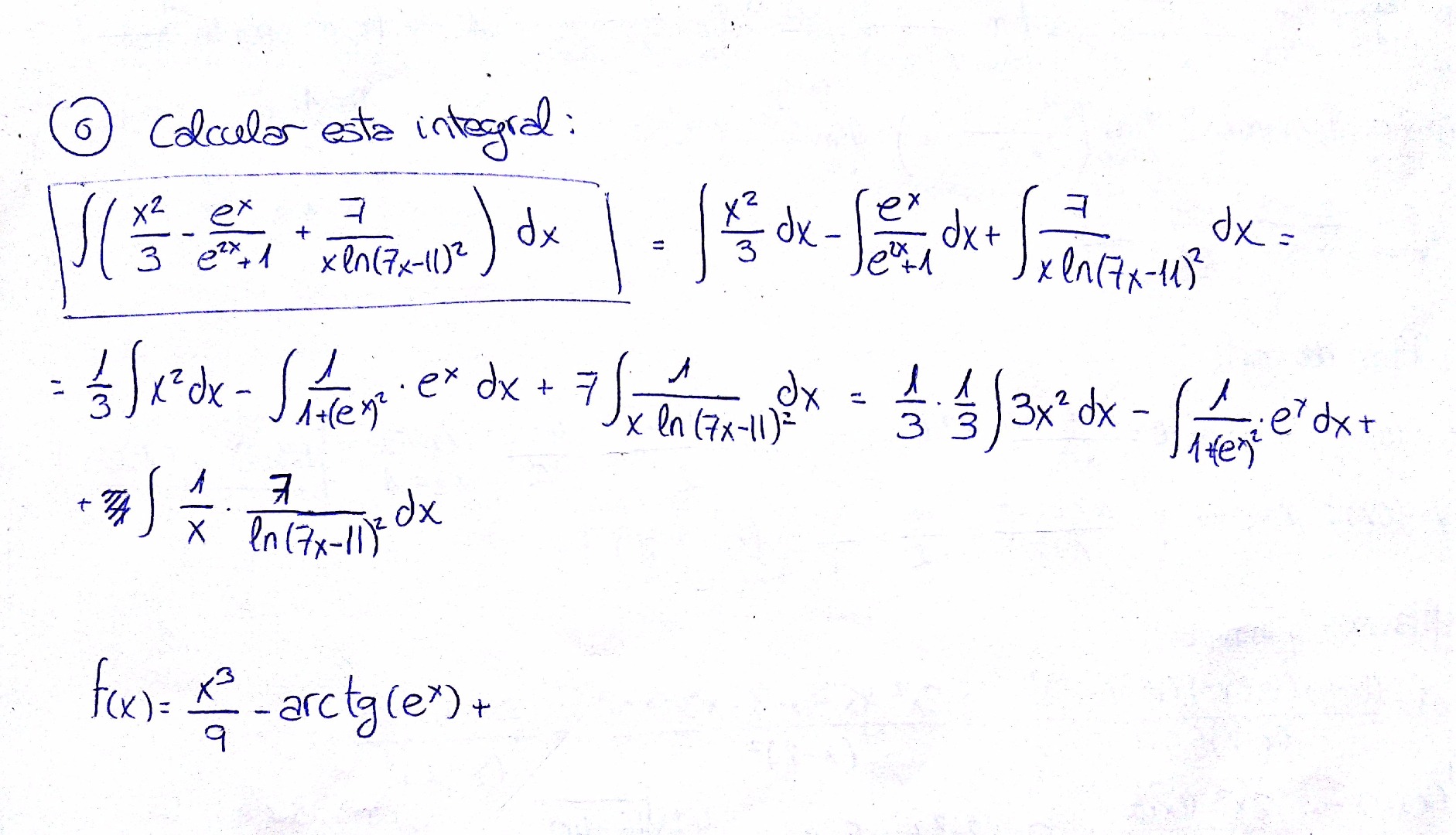 Mi pregunta de hoy es: ¿cómo resuelvo la tercera integral? Con las dos primeras no tengo problema, pero la tercera me ha dejado atrancado. Tengo la intuición de que es un logaritmo neperiano de algo, pero el 7/ln (7x+11)^2 me desconcierta. Gracias de antemano por vuestra ayuda :).