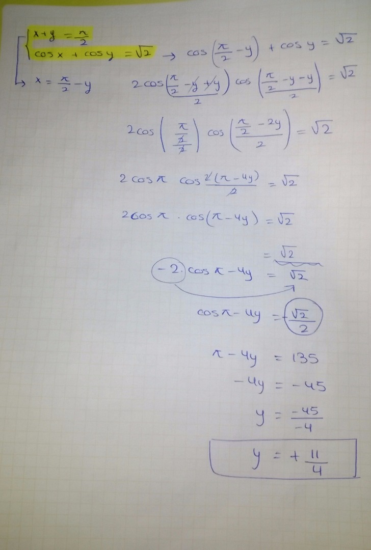 No entiendo lo que hiciste para cos(PI/2-y)... Lo que si puedo decirte es que cos(PI/2-y)=seny....