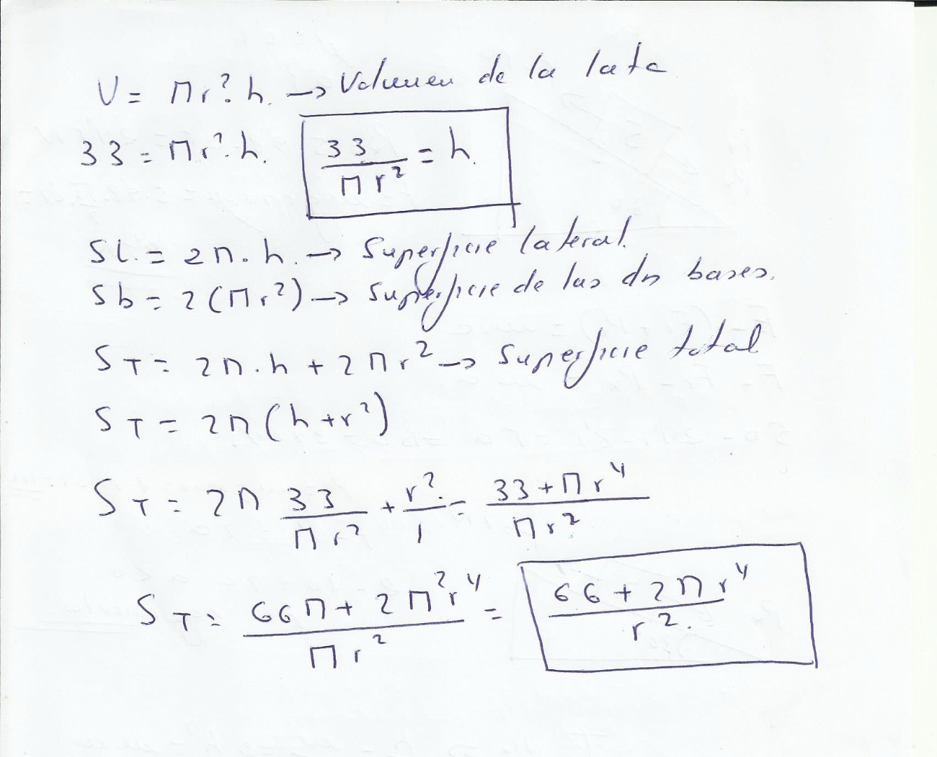 Un fabricante de latas de refresco necesita producir latas cilíndricas de 33 〖cm〗^2 de volumen. Expresa:
