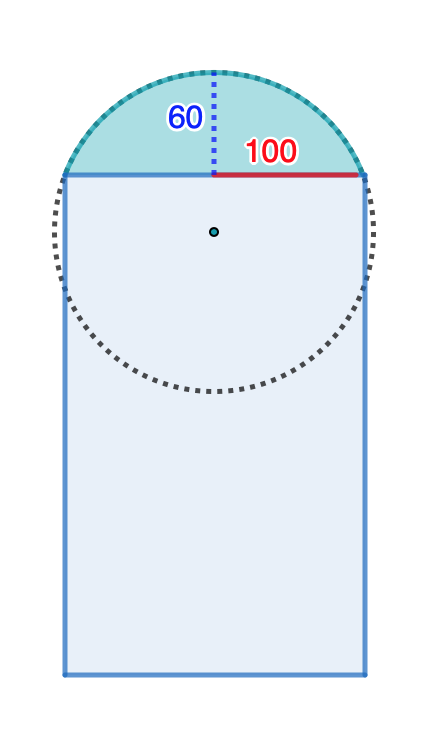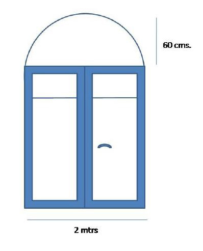 Encuentra el radio del círculo en la siguiente figura, es el arco de la puerta de entrada.