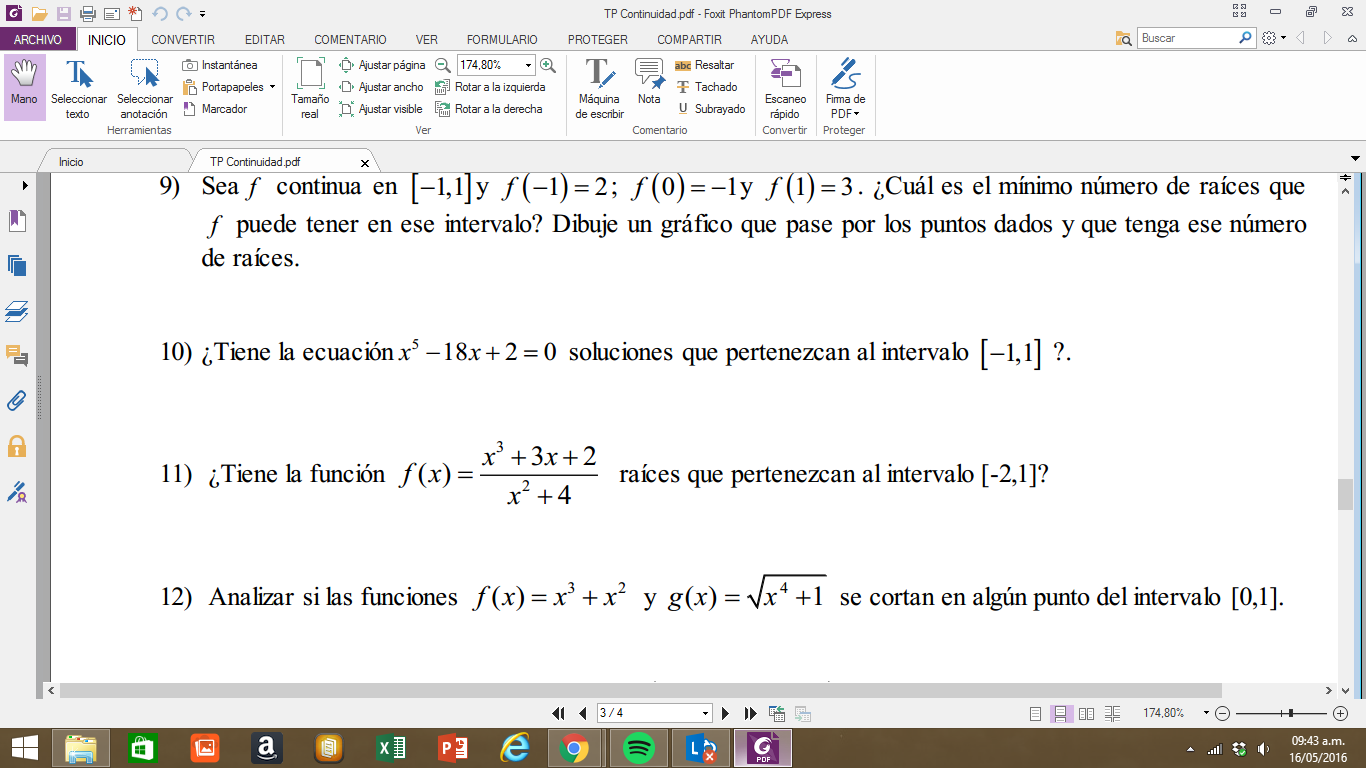 Lo que hice fue decir que es continua por ser un polinómio, y aplique el teorema de Bolzano,