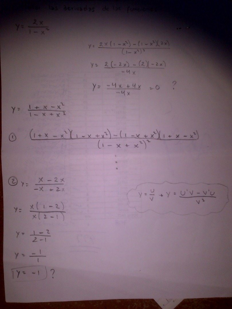 Hola, necesito ayuda con estas dos derivadas. Me gustaria resolverla usando la definicion pero no se como hacerlo... Para el primer ejercicio utilice la formula de la derivada de un cociente y me dio 0 pero no estoy segura.. El segundo ejercicio aplique lo mismo y tambien utilice la regla de la cadena pero tampoco estoy segura que este bien...
