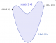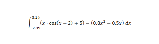 Los puntos de corte entre las dos ecuaciones que se elijen para calcular esa integral son sobre el eje de las X, me explico: en el punto G sería -2.39 y en el H 3.14.