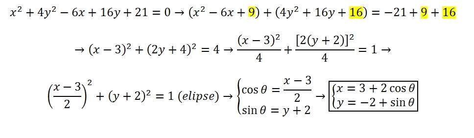 Necesito pasar esta ecuación x²+4y²-6x+16y+21=0 a coordenadas polares, el problema surge cuando al reemplazar x² me queda r²cos²θ, es decir, no logro terminar de simplificar para llegar a una ecuación polar del tipo r=cos²θ por ejemplo.