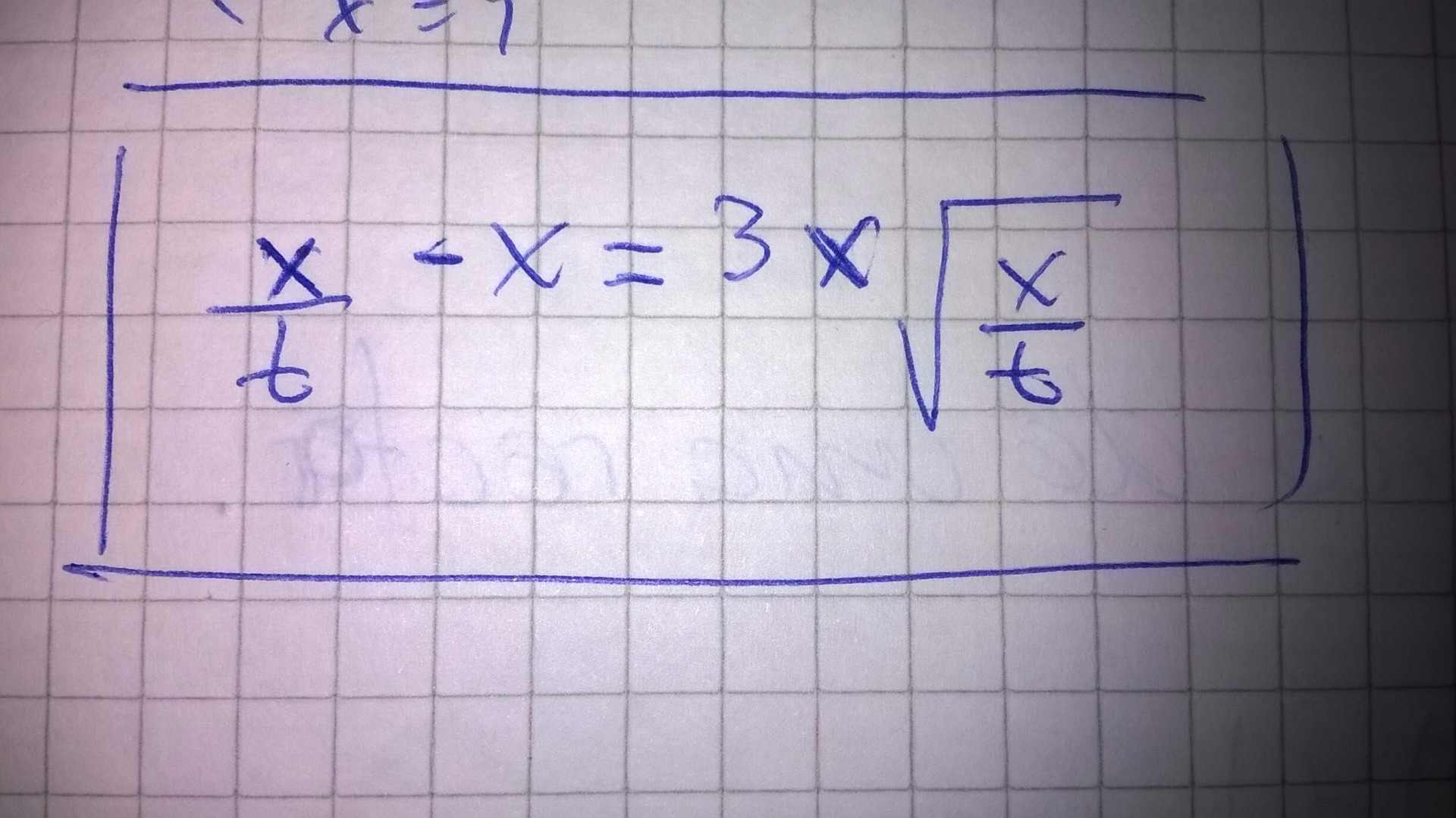 En tu caso, elevando al cuadrado cada miembro... (x/t-x)²=9x².(x/t).... x²/t² +x² -2x²/t=9x³/t... Multiplicando todos los terminos por t²....