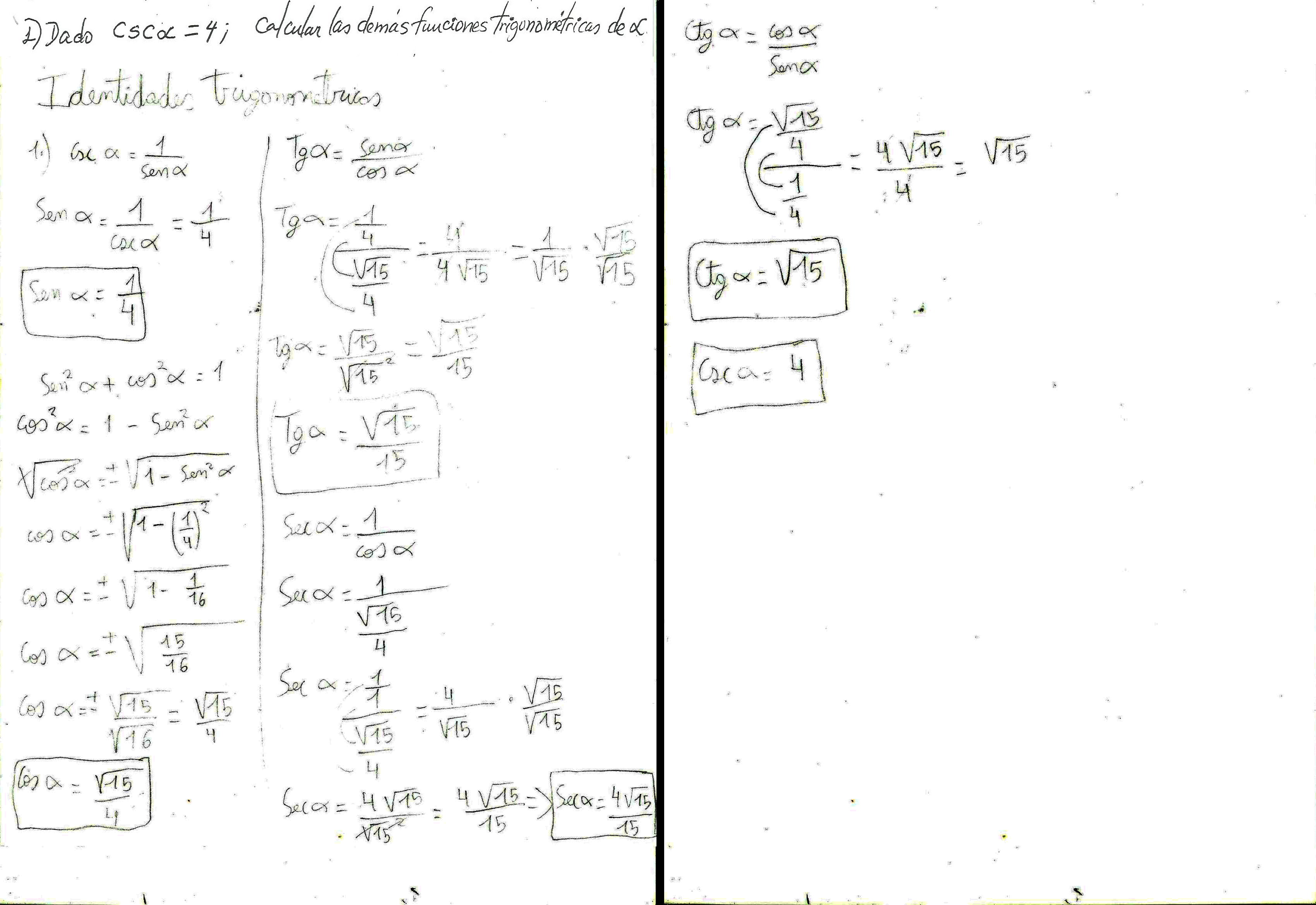 Hola amigos, necesito que me ayuden a comprobar el siguiente ejercicio de funciones trigonométricas, me piden calcular todas en base a una. Ya logré hacerlo pero no estoy seguro del resultado, tengo especial duda con el signo del seno y el coseno, está correcto?