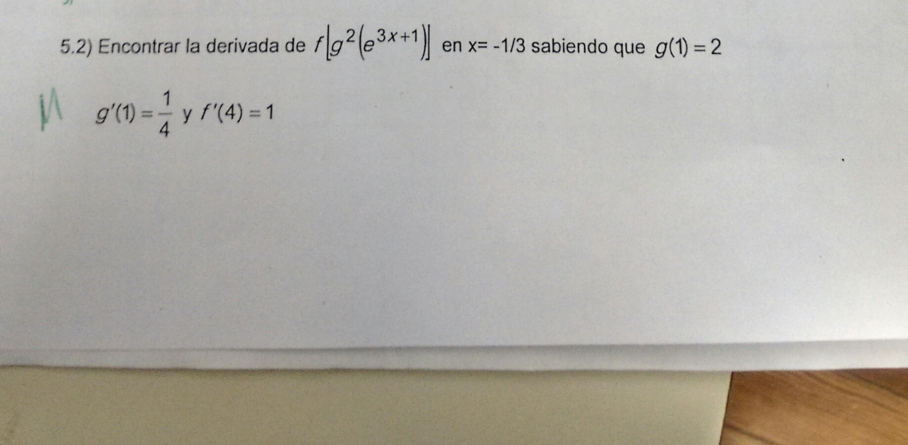Yo derivo y me queda y´=2g(e^(3x+1)).e^(3x+1).3