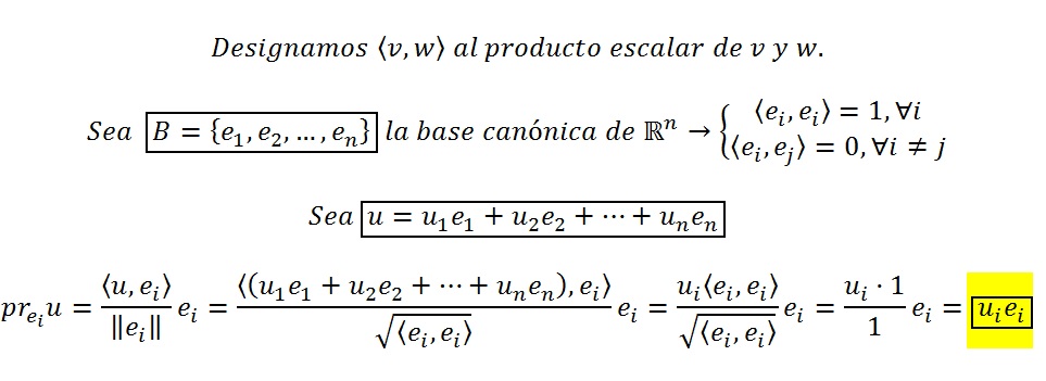 demuestre que la proyeccion de u un vector de r^n sobre el vector canonico e el vector uiei, donde u es la enesima componente del vector u
