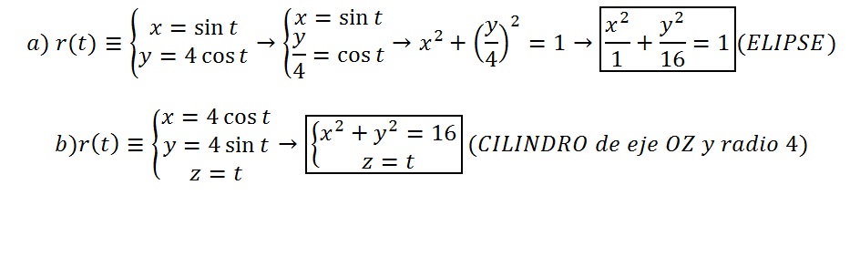 Se trata de identificar curvas dadas por las siguiente parametrizaciones:
