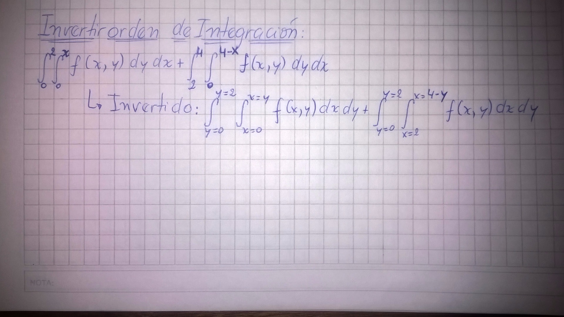 Buenas de nuevo, tengo un ejercicio que dice "Expresar la integral invirtiendo el orden de integración". Luego de graficar llegué a la siguiente resolución. Es correcta? Desde ya muchas gracias :)