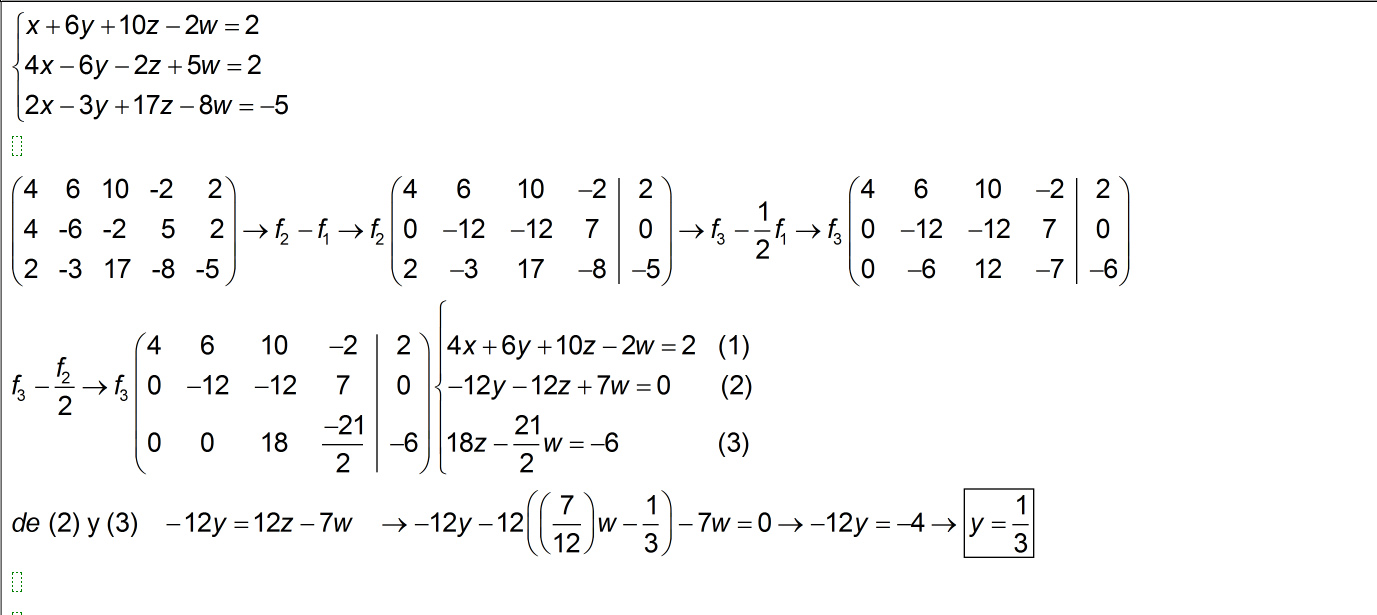 Hola!!!, el ejercicio q no logro resolver es, 4x+6y+10z-2w=2