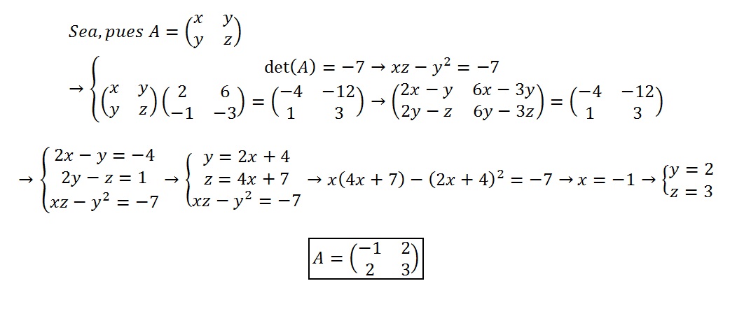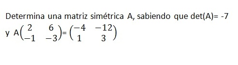 Hola unicoos, me ayudan con este ejercicio?. Entiendo que si es simetrica el elemento a12 y el a21 deben ser los mismos, pero ahi me quedo, nose que dato me aporta saber el determinante... Gracias!