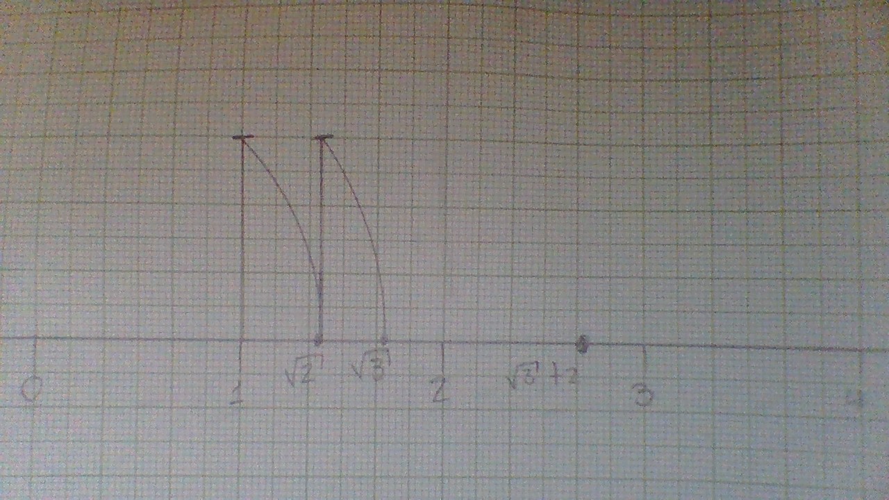 Jonathan, al momento de ubicar raices en la recta real, lo mejor es aproximarlas, por ejemplo √2 es aproximadamente 1.4142..., entonces solo debes ubicarlo en ese numero (en 1.4 aprox) √3 es 1.7320... (1.7 aprox) y √3+2 es 3.7320... (aproximado es 3.7) solo ubicalo en estos decimales y listo!!!