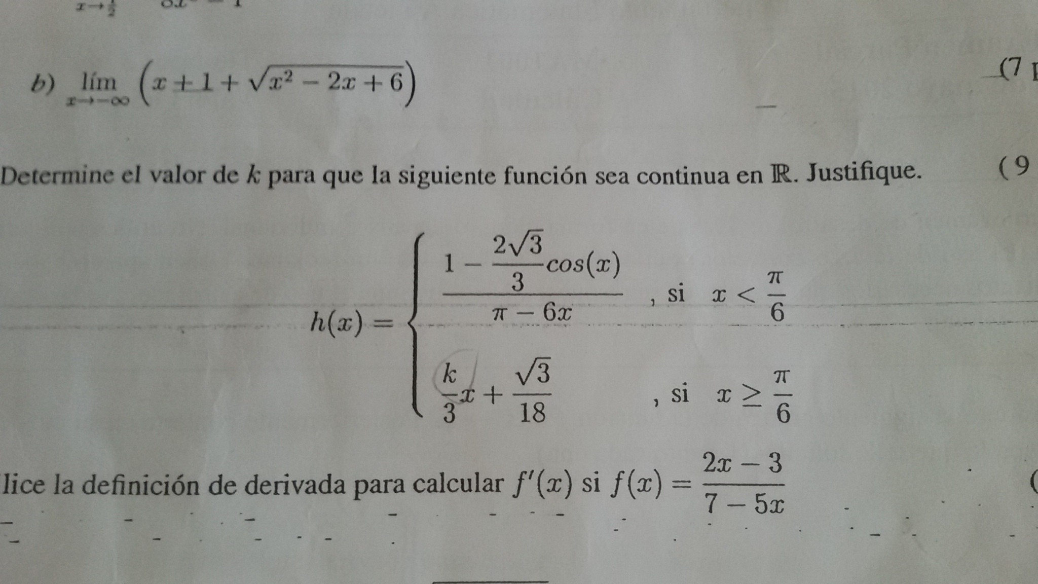hola,necesito ayuda con este problema de continuidad porque realmente se me a complicado y no se como responderlo, puesto que no soy capaz de resolver la indeterminación que se da en la primer ecuación, racionalice pero no doy con la respuesta, muchas gracias de antemano