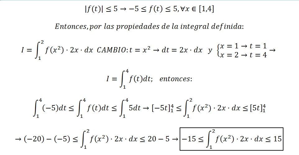 Si |f(x)|≤5 ∀x∈[1,4] ==> -15≤∫f(x^2)*2x dx ≤ 15. No se me ocurre que hacer para demostrar si es verdadero o falso. Alguna ayuda??