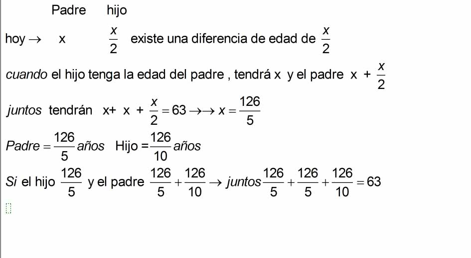 " tengo el doble de la edad que tenías tu cuando yo tenía tu edad y cuando tengas mi edad,la suma de nuestras edades será 63. Que edad tiene cada uno?