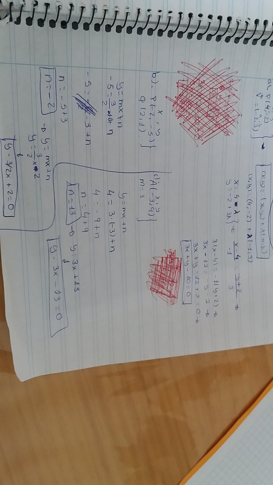 a) Pasa por el punto P(4,-2) y tiene por vector director v(-1,3).
