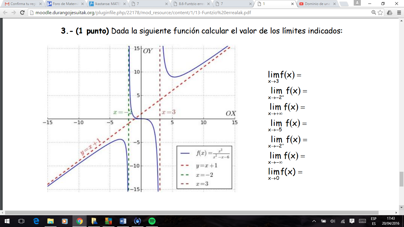Buenos días me podrían ayudar con esta función y=(8(2-x)/(x^2+x-6))+1, necesito sacas dominio, asíntotas, cortes, paridad y signos.
