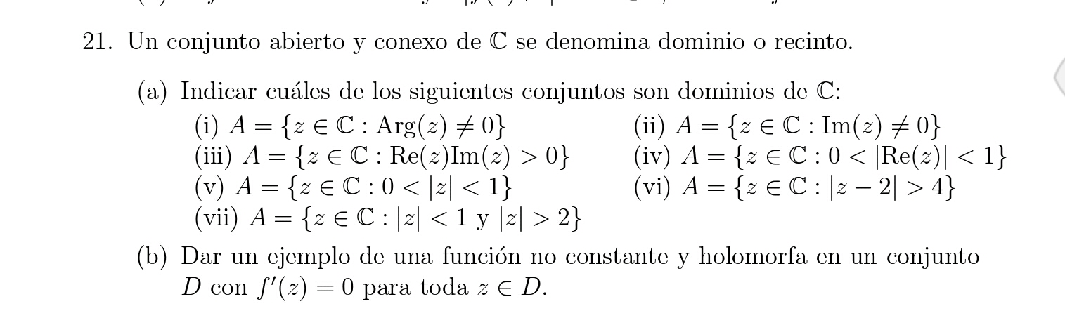 i) A es todo el plano complejo,excepto la semirrecta +OX. Es abierto y conexo.