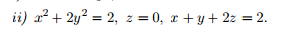 X² + 2y² = 2 , z = 0 , x + y + 2z = 2
