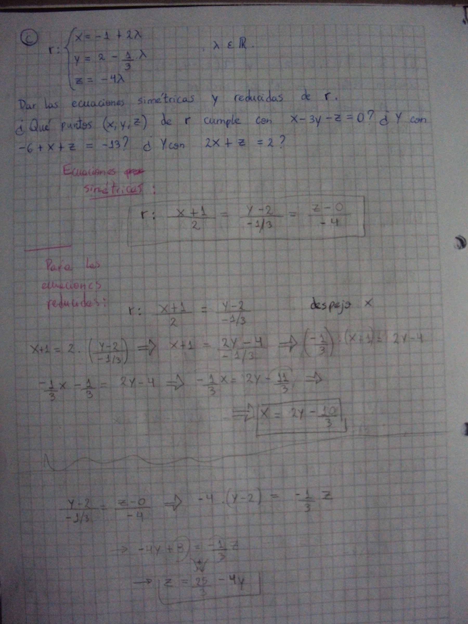 Buenas Unicoos! Me podrían ayudar con la segunda parte de este ejercicio? no me sale resolverla.. la parte donde dice"qué puntos (x; y; z) de r cumple con x-3y-z=0 " ? Gracias!!